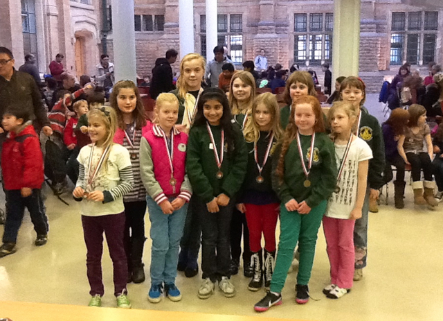 The girls in our team gained confidence in each round. They won 2.5 out of 12 in the first round, 3 out of 12 in the second and 6.5 out of 12 in the third. Four of the girls Abigail Harvey, Ruby Lidgard, Yasmin Hughes and Joanna Hoyle scored 2 out of three in their games.