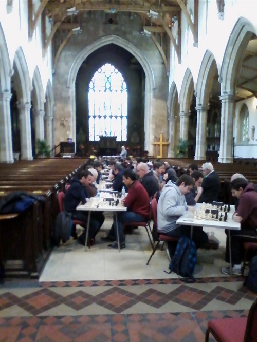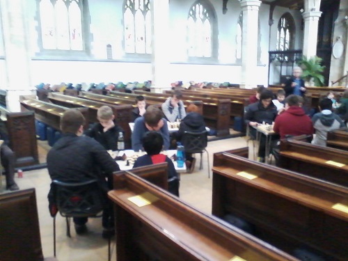 The quickplay competition was held on Saturday 28th March to celebrate the 500th anniversary of the spire on St James's Church in Louth. There were 18 entries in total for the adult section. Nick Stead (Grimsby) and John Naylor (Louth) shared first place with a score of 5/6.