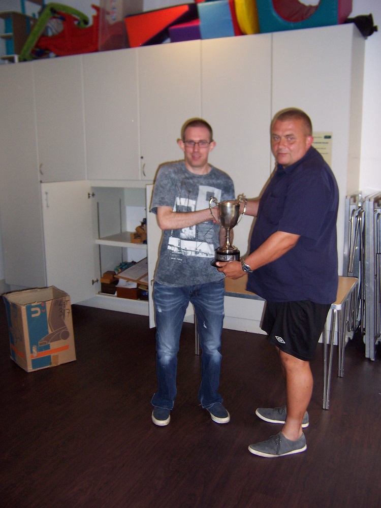 Nick Stead accepted the Division 1 trophy on behalf of Grimsby chess club. Grimsby are by far the strongest team in Division 1 and there was little doubt that they would win for the 3rd season in a row.
